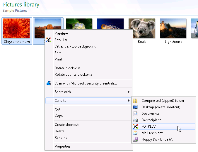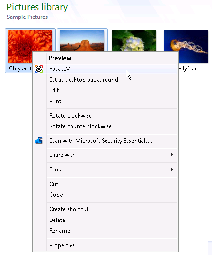 Lietošanas ērtībai Fotki Manager pievienos izvēlnes punktu "FOTKI.LV" pie visu graisko failu izvēlnēm, ka arī elementu "FOTKI.LV" izvēlnē "Send to...": klikšķinot uz tiem punktiem palaidīšies Fotki Manager uzreiz ar attiecīgajām fotogrāfijām. Šos paplašinājumus var atcelt programmas papildus uzstadījumos (sk. augstāk).
