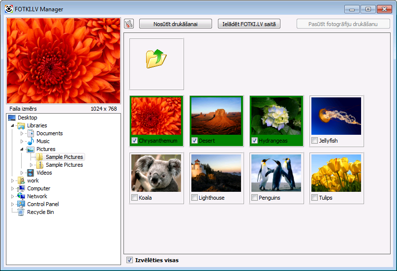 iezīmējiet ar ķeksīšiem nepieciešamas fotogrāfijas;