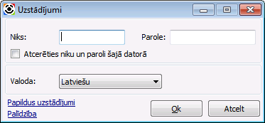 Uzstādījumu logu var izsaukt arī spiežot pogu "Uzstādījumi" .